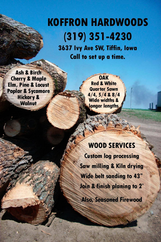 Koffron Hardwoods is an urban hardwood lumber business. We are committed to promote the highest use of urban lumber one tree at a time. We believe the best use of a tree is in its natural growing state. When storms, disease or location make that no longer possible, we strive to maximize the tree's potential, often turning it into useful lumber. We do not believe in the term wood waste. Sawdust and nonmillable logs are turned into BTUs to keep our wood kiln going and our winters warmer.